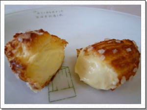 口の中に入れるとパイとカステラとクッキーをひとつにしたようなシュークリームで、