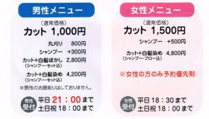 高級感漂う1,000円カットのお店です。 〜低価格でも癒しの空間〜 当店はただ髪をカットするだけの場所ではなく低料金のお店を感じさせない木の温もりを持った品のあるお店に仕上げています。(以下のお店の写真をご覧になってお店の雰囲気を感じてください!) 理美容業界で経験を重ねたスタッフが男性・女性を問わず、大人から子供まで幅広く対応させていただきます。お仕事帰りに気軽にお越しください。
